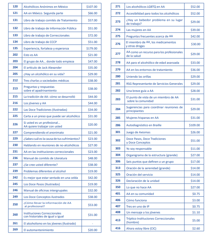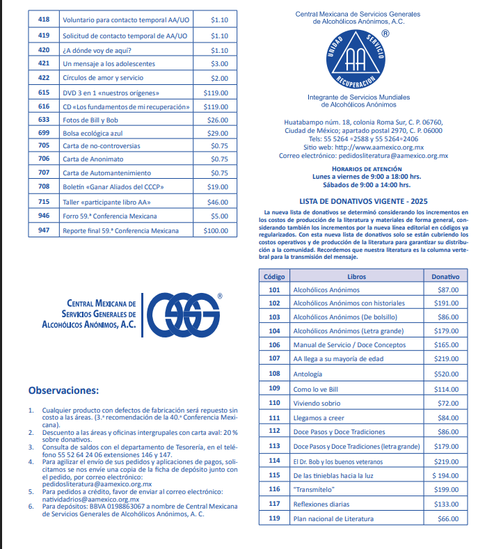 Es el órgano de información y servicio del comité de Literatura de la Junta de Servicios Generales, publicado anualmente por la Oficina de Servicios Generales de Alcohólicos Anónimos en México.