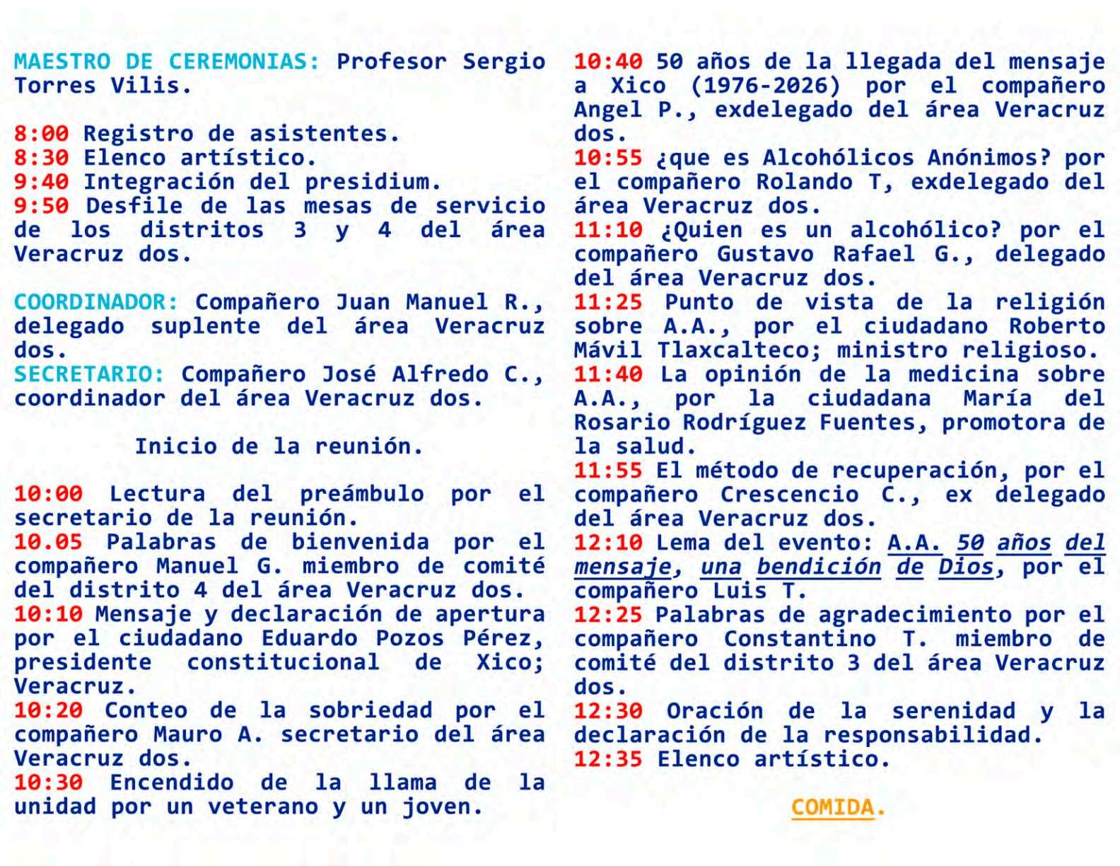 Ésta es la fecha en que oficialmente se funda Alcohólicos Anónimos y a partir de la cual comienza a desarrollarse el revolucionario y exitoso programa de los “Doce Pasos de A.A.” que ayuda a los alcohólicos a mantenerse en sobriedad. El nombre de A.A. es tomado de la primera publicación del libro “Alcohólicos Anónimos” en el año de 1939 escrito por Bill W.