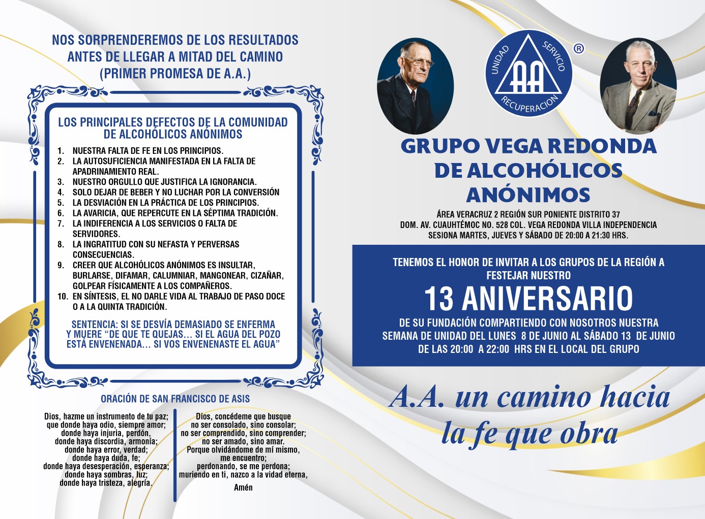 Ésta es la fecha en que oficialmente se funda Alcohólicos Anónimos y a partir de la cual comienza a desarrollarse el revolucionario y exitoso programa de los “Doce Pasos de A.A.” que ayuda a los alcohólicos a mantenerse en sobriedad. El nombre de A.A. es tomado de la primera publicación del libro “Alcohólicos Anónimos” en el año de 1939 escrito por Bill W.